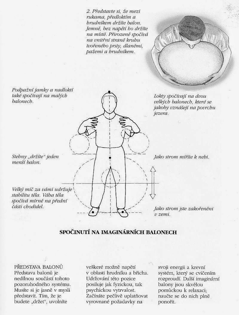 Představte si , že váš trup roste vysoko do nebes, nad oblaka, ke slunečnímu světlu a ke hvězdám. Odsud přijímáte a vstřebáváte světlo, vítr, déšť, kosmickou energii jang. Nabýváte ohromné, vesmírné velikosti.